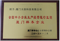 2015年厦门大恒科技被评为厦门市知识产权试点企业