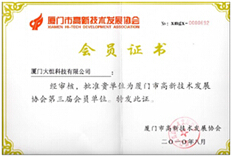 厦门市高新技术发展协会会员证书