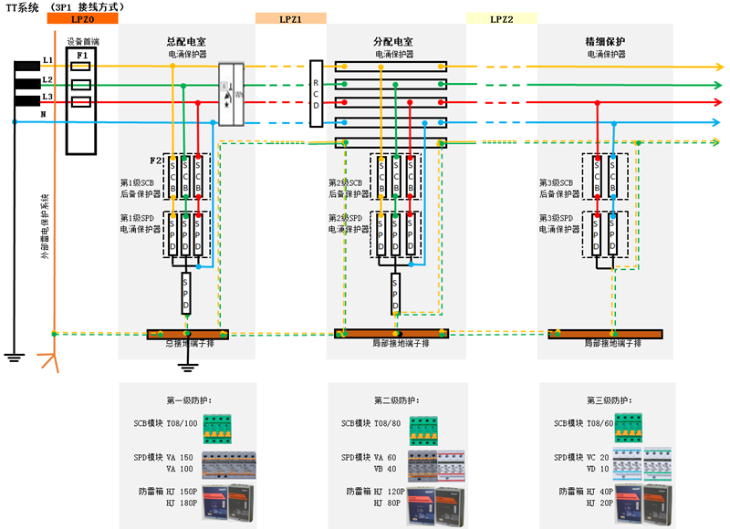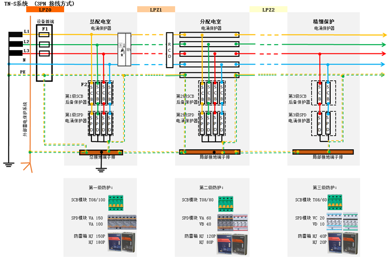 3. 具有防护SPD失效起火并带脱扣保护功能的电源系统电涌多级保护方案(依据DB J12835-2014、DB XJJ068-2014)