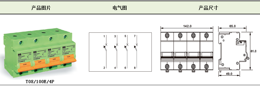 三相:T08/60E1/4P 单相:T08/60E1/2P |