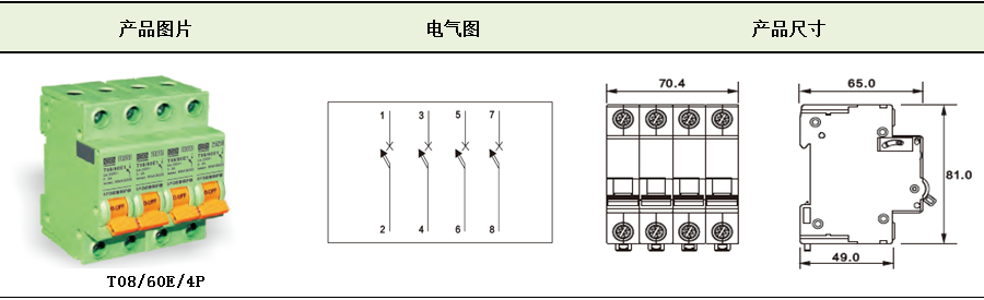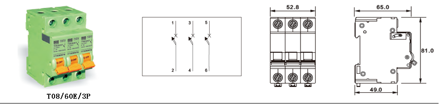 三相:T08/60E1/4P 单相:T08/60E1/2P |