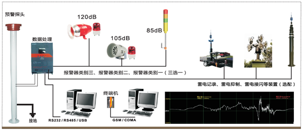 大恒T30A雷电预警处理机,可与电脑连接并实现远程雷电监控的目的,也可通过对下载的雷电预警数据的分析,对雷云电场强度和极性变化做出更准确的判断。同时,也可以与声光报警系统相连接进行声光报警。